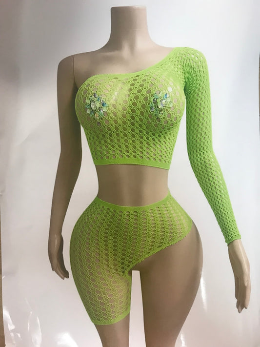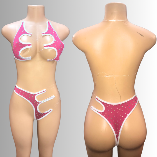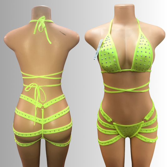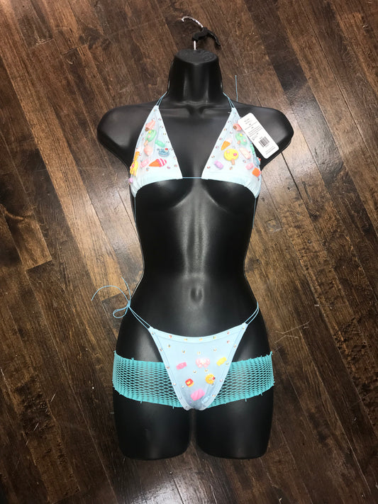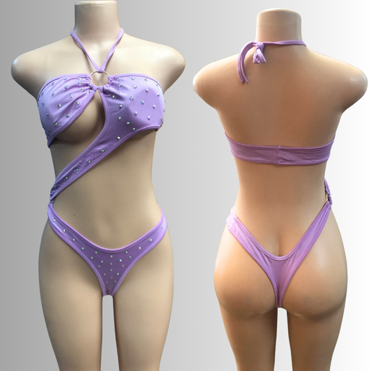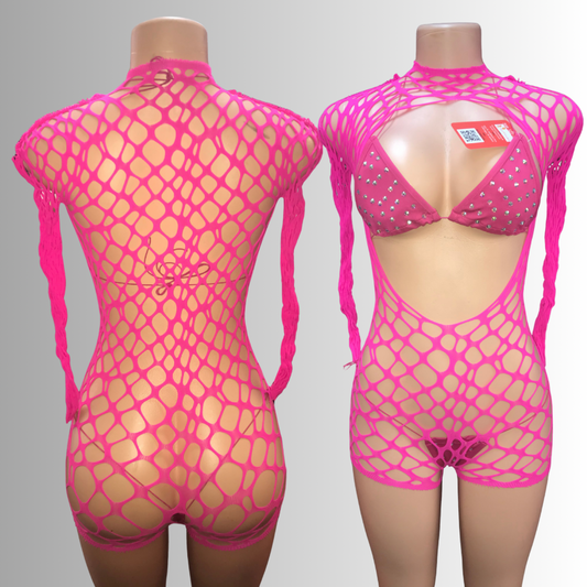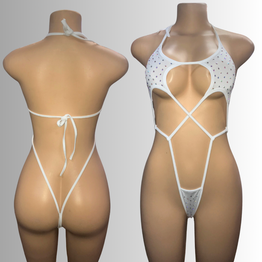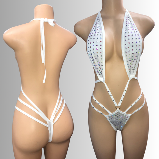 Dancewear exotic custom dancer outfits teddy one piece bikini halter top set thong romper lingerie rhinestones sequence fringes fishnet stocking
