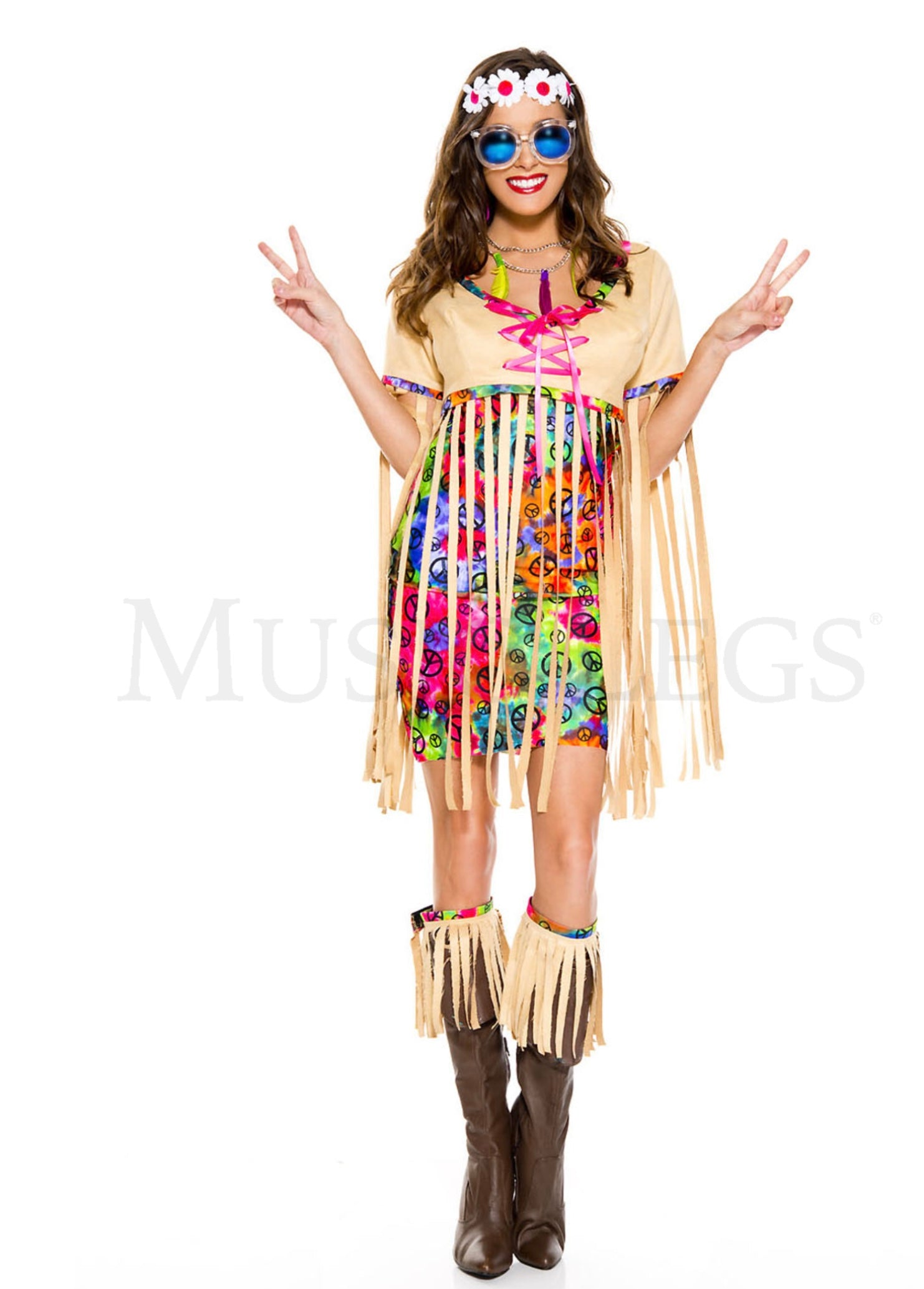 4 PC. Retro hipster Includes: shredded multi color dress, headband, leg wraps and glasses