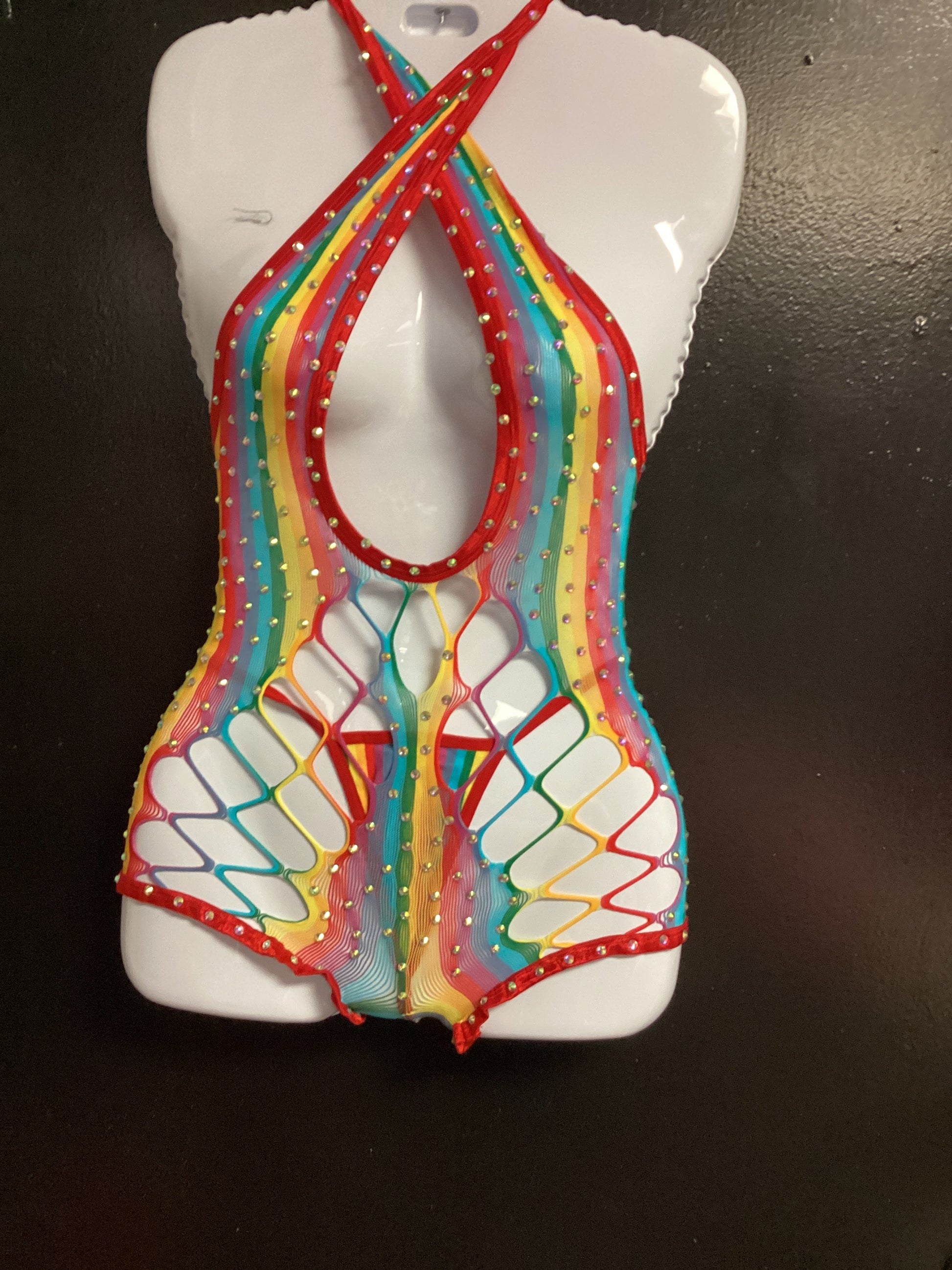 Net halter shorts romper with rhinestones