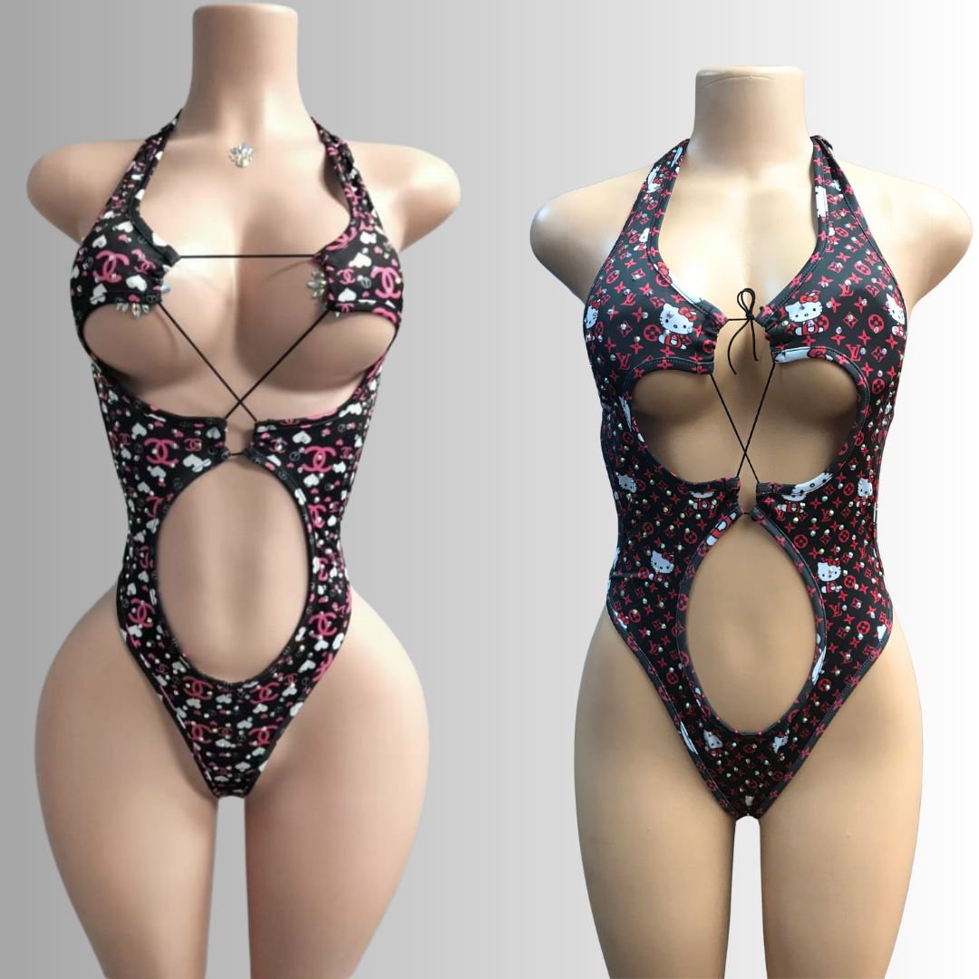 bodysuit lace up cut outs detail w/ elastic cord lace up in back